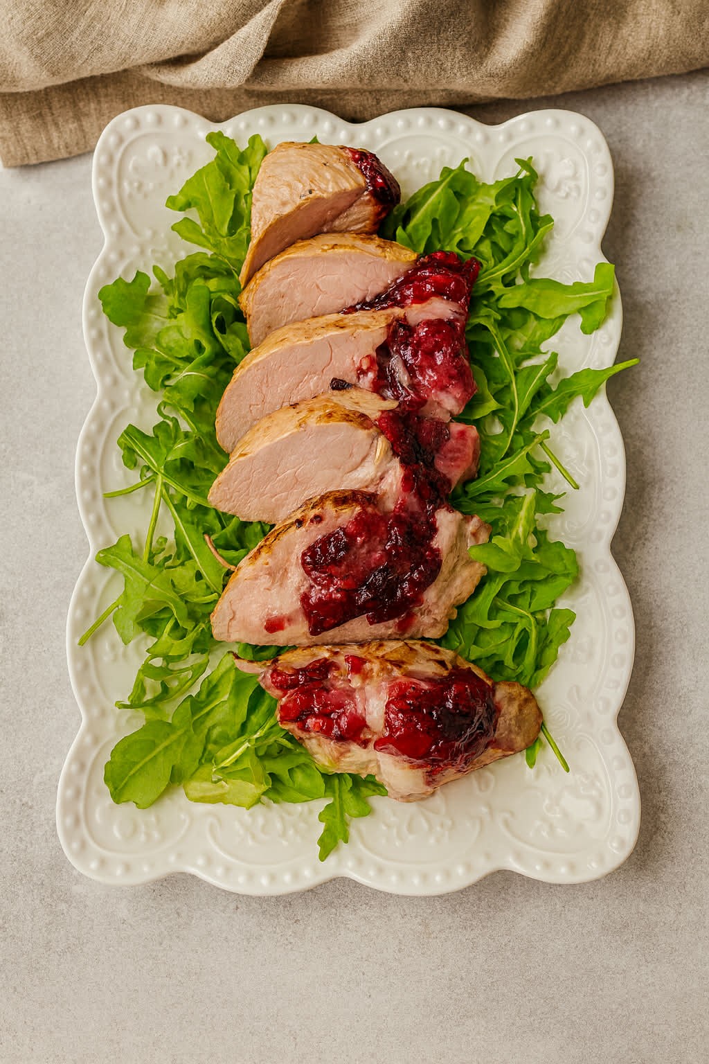 Ajouter le fromage et la confiture de canneberge dans le filet de porc.